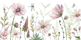 Papier peint fleurs et libellules