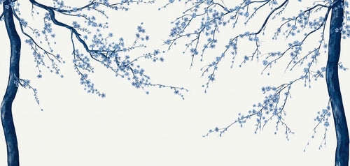 Papier peint panoramique fleur Sakura bleuté, XXL, tendance