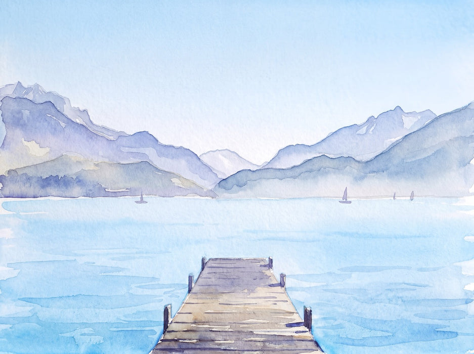 Papier peint aquarelle ponton lac Annecy - Perspective
