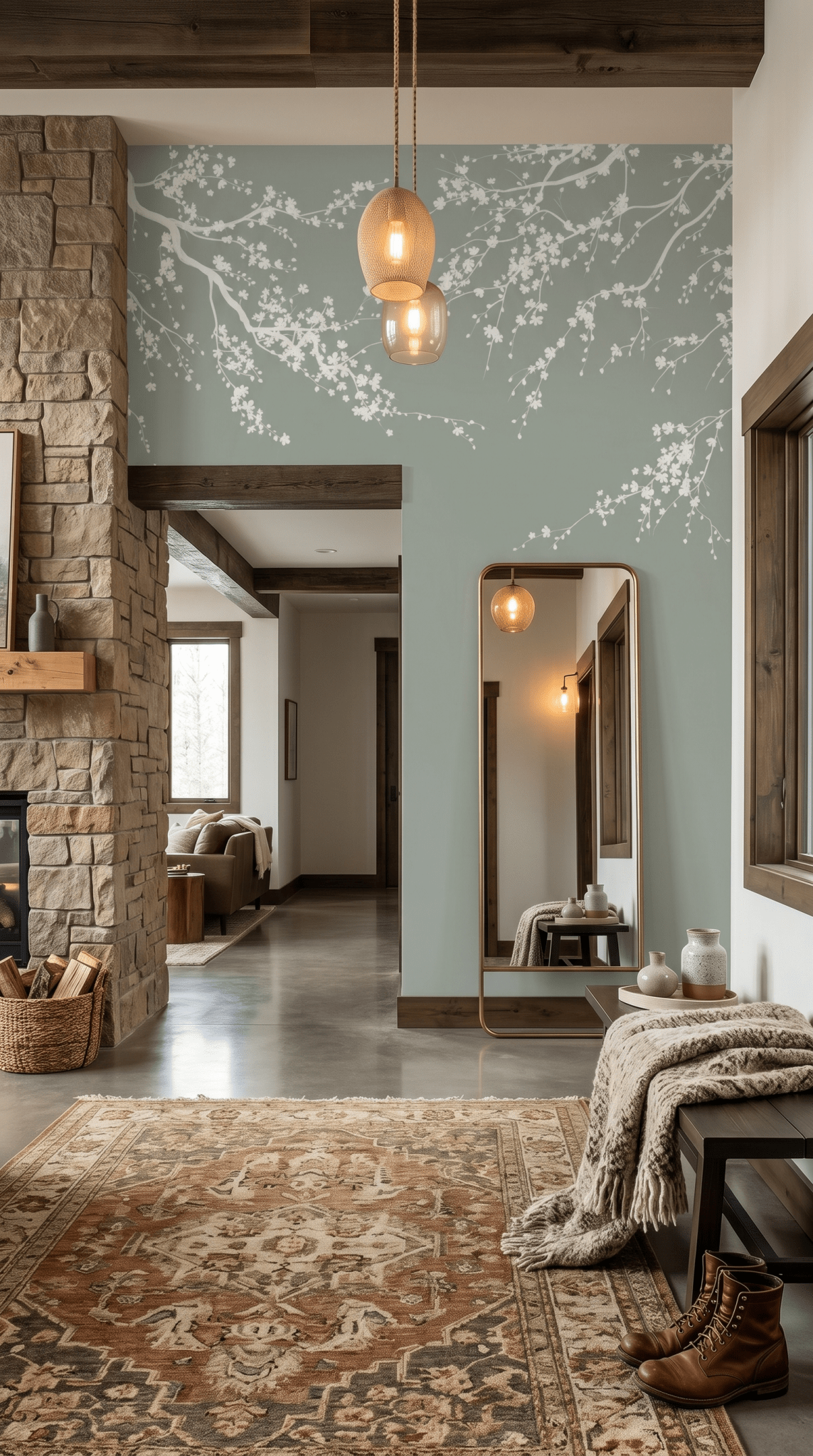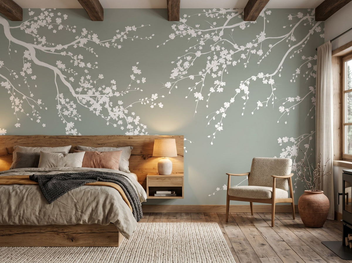 Très tendance en décoration, le vert sauge est une teinte subtile qui invite au calme et à la sérénité. Associé aux branches fleuries, il transforme votre pièce en un véritable cocon inspiré de la nature.