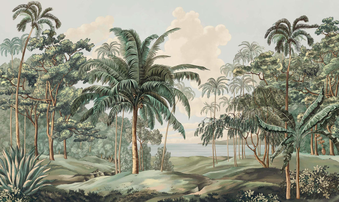 Déjese hechizar por el esplendor de un papel pintado de paisaje de estilo indonesio procedente de la isla de Célebes. Esta excepcional decoración mural, en la que cada detalle está cuidadosamente dibujado a mano, evoca la esencia misma de una exuberante pintura botánica. Con una profusión de abundante flora, esta obra maestra mural transforma instantáneamente cualquier habitación en un jardín encantado. Los colores brillantes y vibrantes cautivan los sentidos, creando una experiencia visual que despierta el alma y evoca emociones profundas.
