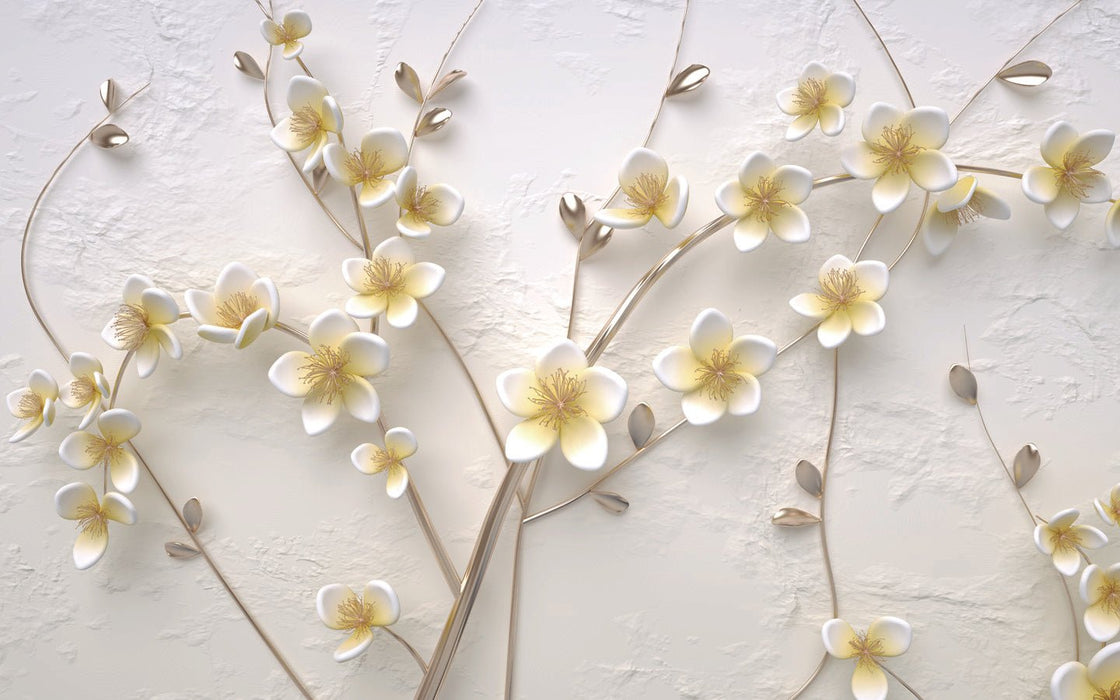 Papel pintado 3D flores blancas