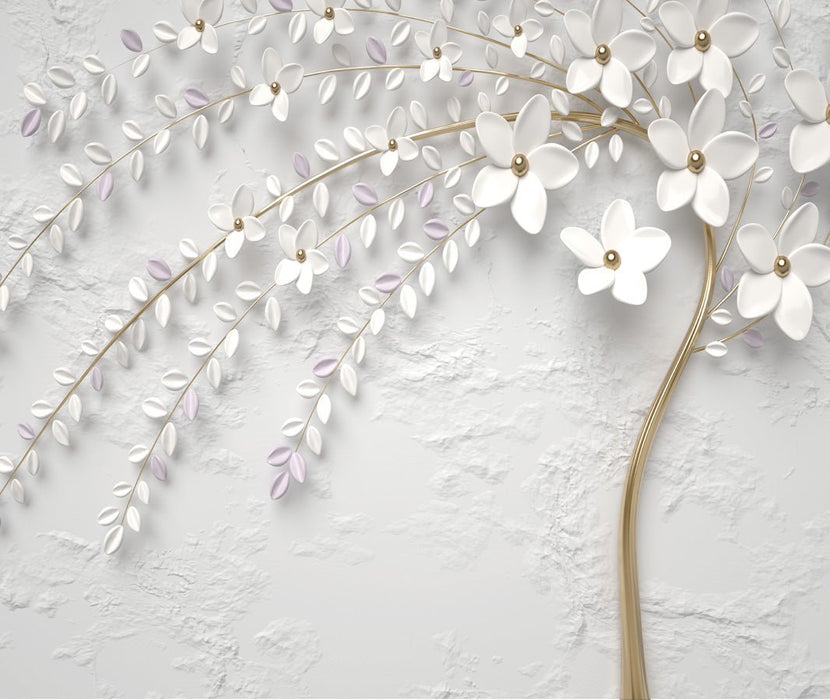 Papel pintado 3D panorámico en trampantojo de un árbol en flor