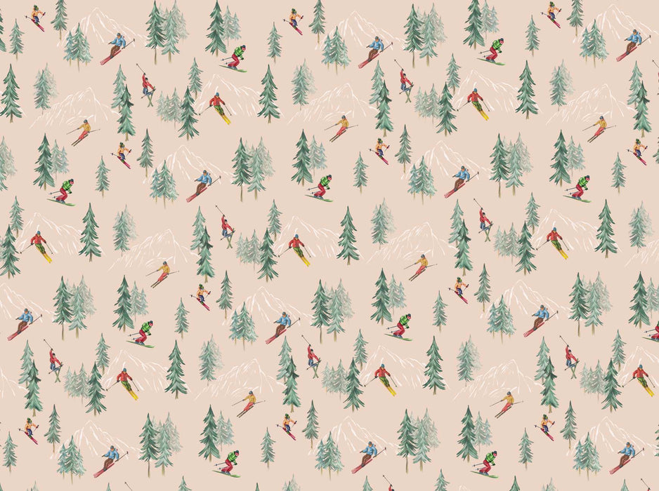 Descubra los deportes de montaña con nuestro papel pintado Alpine glisse pêche. Representando los deportes de invierno con sus esquiadores y abetos, este papel pintado panorámico encontrará su lugar en todas las habitaciones de su casa, pero también en su establecimiento o chalet.