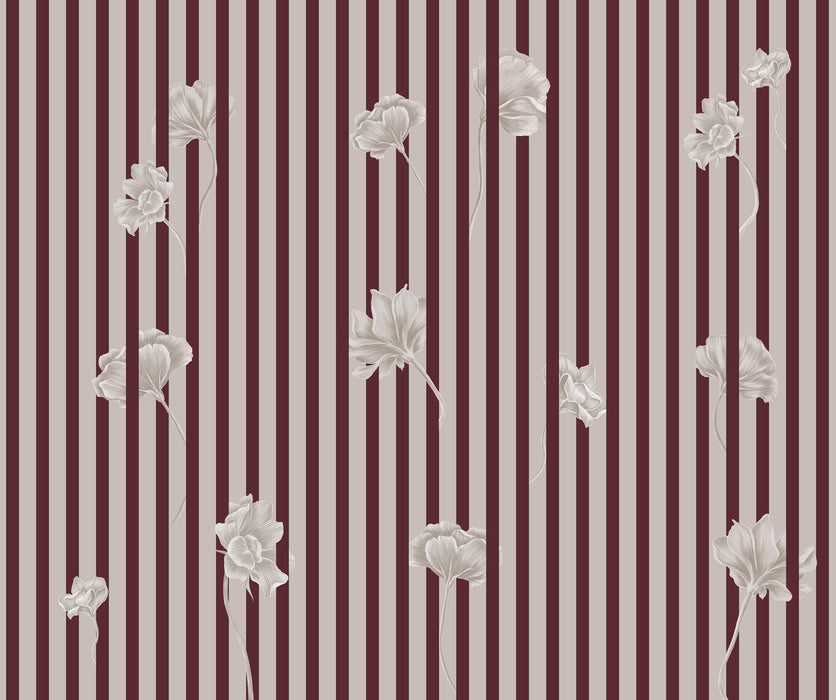 - Elegante color burdeos: rayas burdeos intenso perfectamente equilibradas por flores discretas y vaporosas.