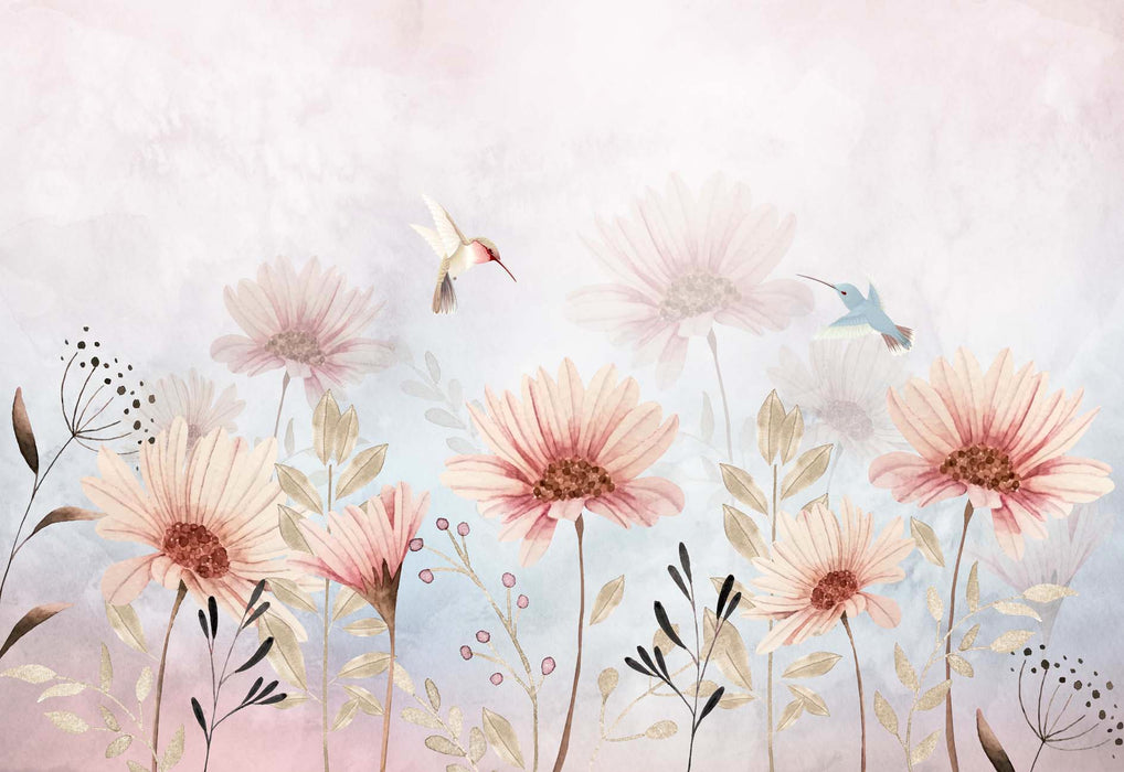 Respire aire fresco descubriendo nuestro bucólico papel pintado de flores y colibríes. Este tapiz mural floral a medida en colores pastel es ideal en un dormitorio, en la cabecera de una cama, en un salón o en un despacho. Coloque este mural floral en su cocina para alegrarla. Una decoración mural a medida que aportará elegancia, frescura y suavidad a su habitación. Un único papel pintado panorámico a medida para alegrar su interior. Este papel pintado es uno de los papeles pintados deco addict.