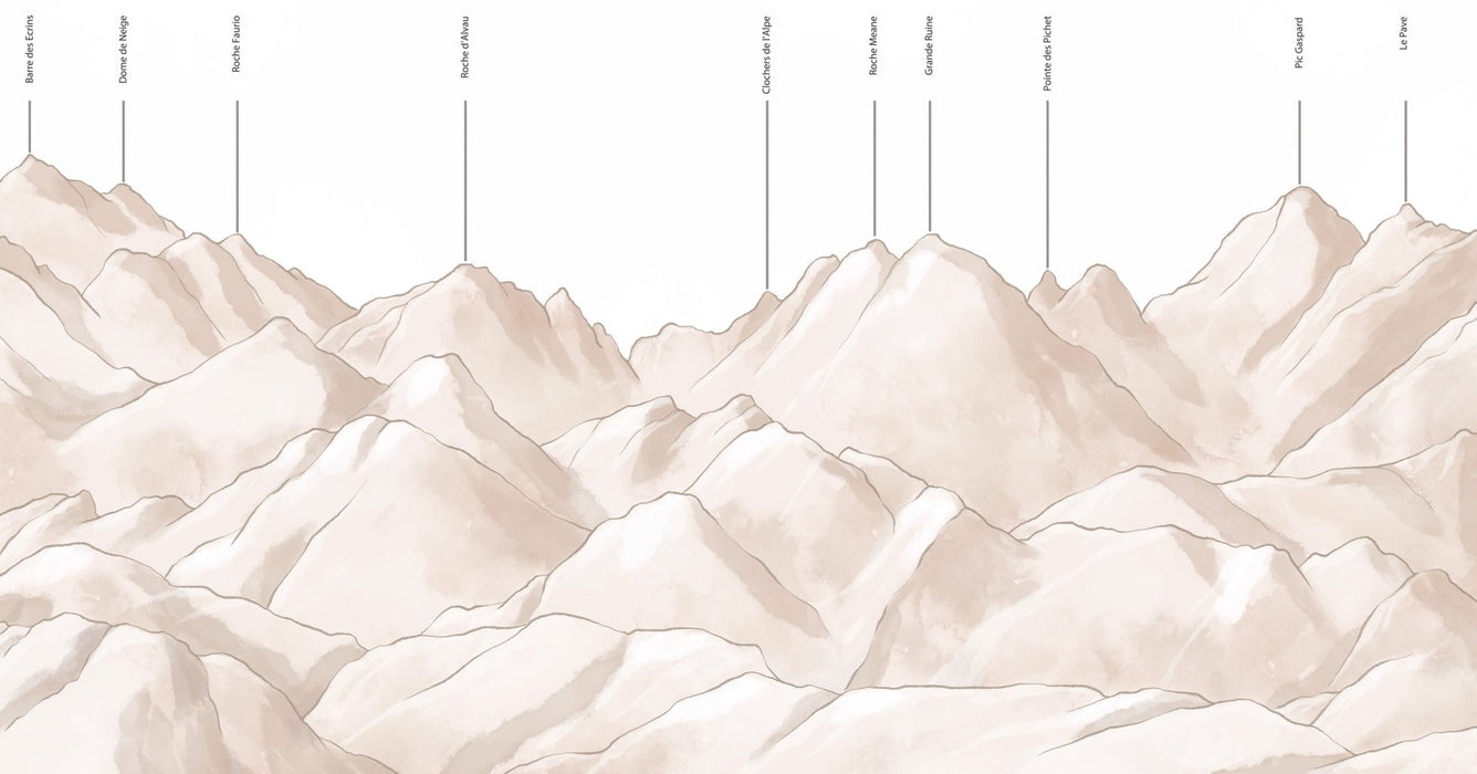 Este papel pintado panorámico macizo de los Écrins en sepiatransformará la decoración de su pared. Gracias a esta decoración mural única y a su color original, el ambiente de su habitación se transformará y ganará altura visualmente. ¿Sería usted el próximo alpinista en escalar estas cumbres? ¡Nosotros decimos que sí!