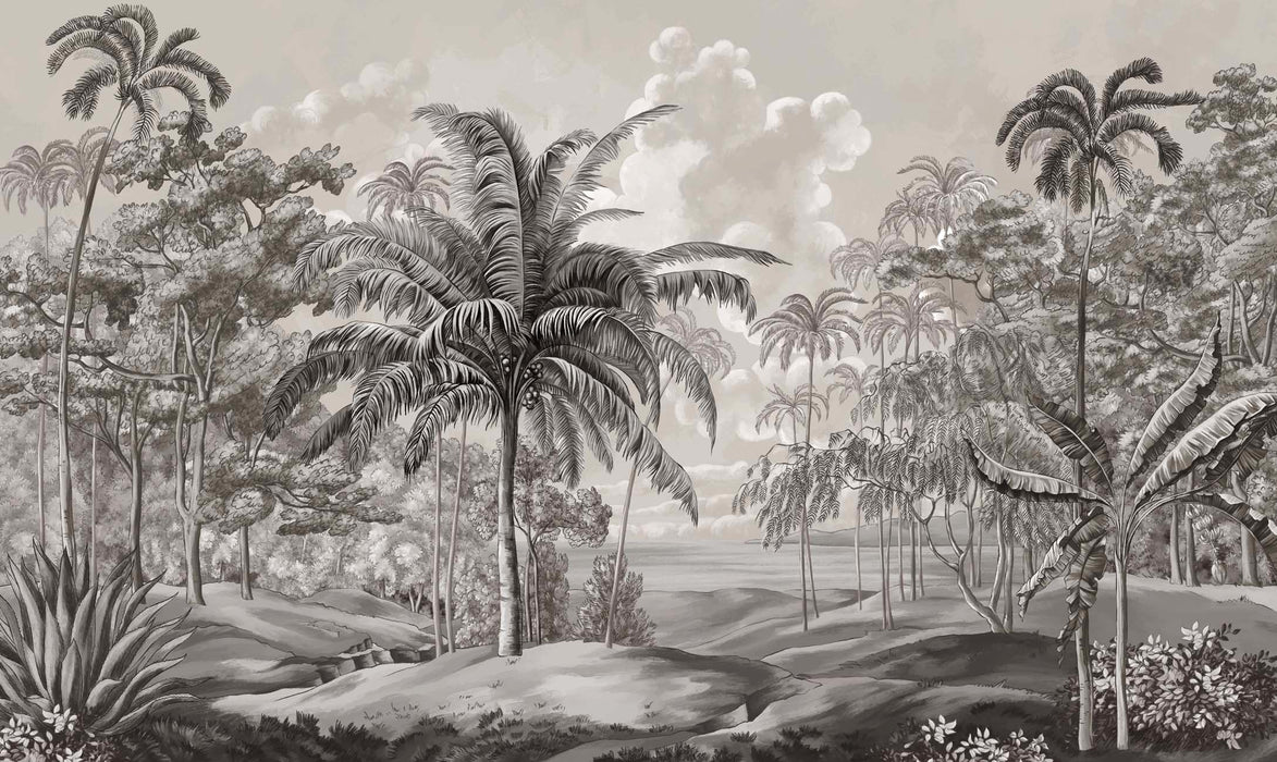 Déjese hechizar por el esplendor de un papel pintado de paisaje en blanco y negro de estilo indonesio procedente de la isla de Célebes. Esta excepcional decoración mural, en la que cada detalle está cuidadosamente dibujado a mano, evoca la esencia misma de una exuberante pintura botánica. Con una profusión de abundante flora, esta obra maestra mural transforma instantáneamente cualquier habitación en un jardín encantado. Los colores brillantes y vibrantes cautivan los sentidos, creando una experiencia visual que despierta el alma y evoca emociones profundas.