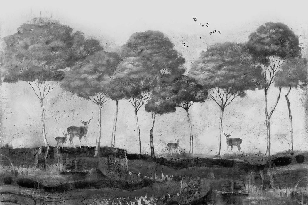 Este papel pintado panorámico no tejido Pinos y ciervos místicos es ideal para crear una espectacular decoración mural en grisalla. Con su motivo blanco y negro de moda, este papel pintado es como un mural, una creación única que vestirá sus paredes. Un fresco mural para un estilo elegante y exótico. Cree fácilmente un interior único con nuestro papel pintado panorámico a medida.