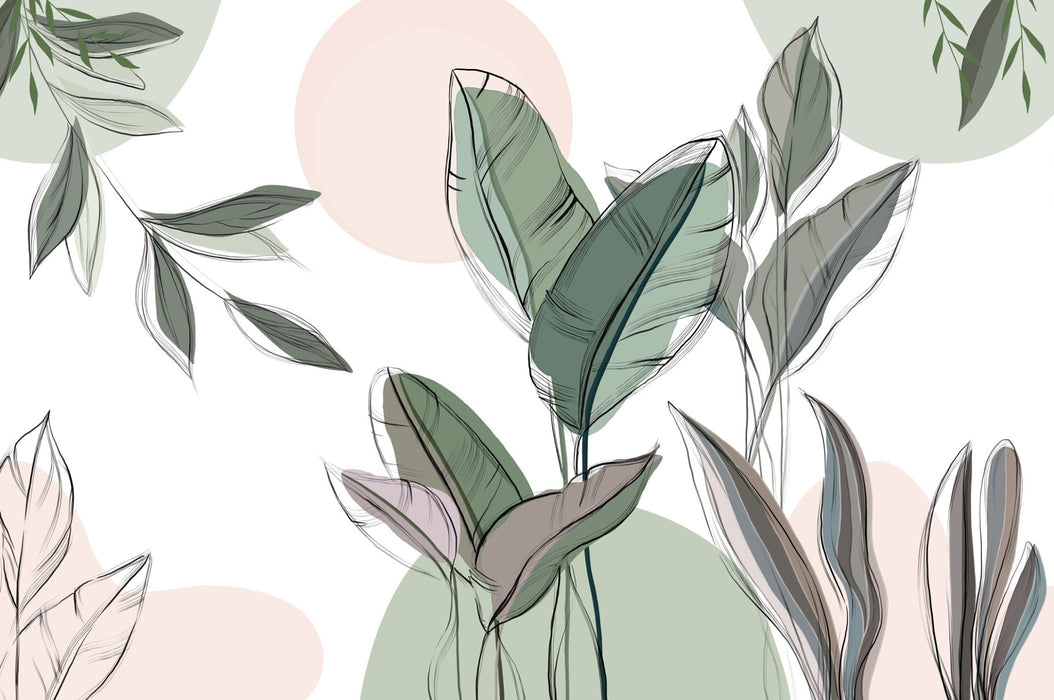 Realce su interior con nuestra versión verde del papel pintado panorámico de plantas. ¿Sueña con un espacio verde todo el año? Haga realidad su sueño y entre en una atmósfera verde. Este mural gráfico de plantas es elegante y poético.