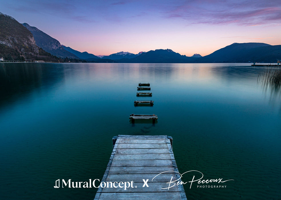 Descubra nuestro magnífico papel pintado Pontón secreto de Annecy, fruto de la colaboración con el fotógrafo @Benpeccoux, que aportará un toque de encanto y serenidad a su decoración interior. Este papel pintado panorámico muestra un amanecer a orillas del lago de Annecy, en Alta Saboya, con un pontón que invita a la evasión.