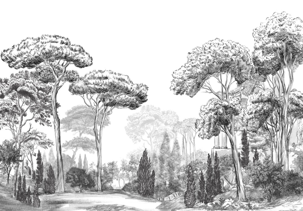 Papier peint pins élégants noirs et blancs - décor mural raffiné