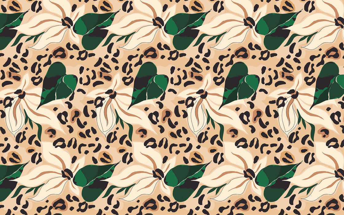 Sublime sus paredes con el papel pintado abstracto Flor felina. Este papel pintado panorámico es una impresionante decoración de pared, con una mezcla de actitud salvaje y formas suaves. La delicadeza de los motivos contrastada con las formas felinas confieren a su decoración un ambiente cálido y original. Este papel pintado panorámico abstracto presenta flores de lis abstractas, combinadas con flores verdes y un motivo felino. Un tapiz lleno de historia que aportará carácter a su pared. Decore su hogar con este original mural MuralConcept.