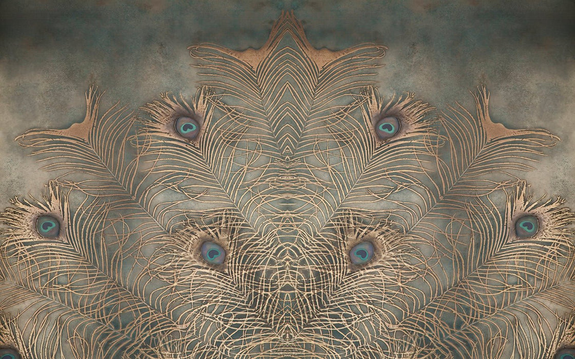 Nuestro majestuoso fondo de pantalla de plumas de pavo real creará un ambiente bohemio muy moderno en casa. Impresa en un fondo de pantalla de tela de efecto sedoso brillante, ¡esta decoración de pared será del efecto más hermoso!