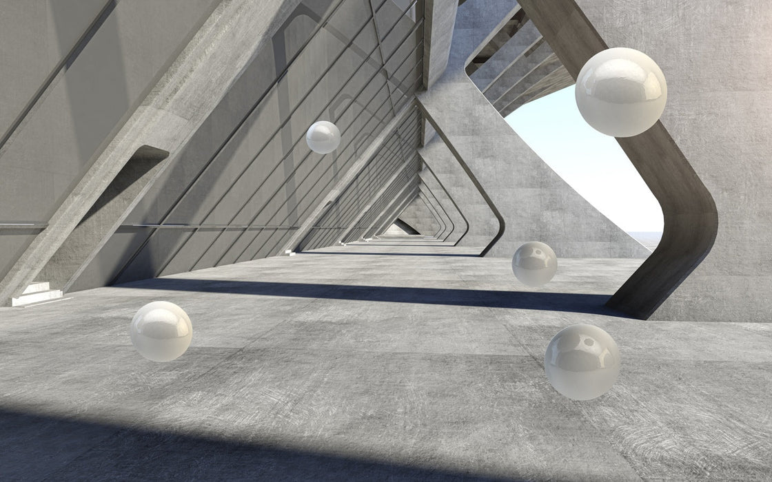 Papel pintado arquitectónico en 3D con bolas colgantes