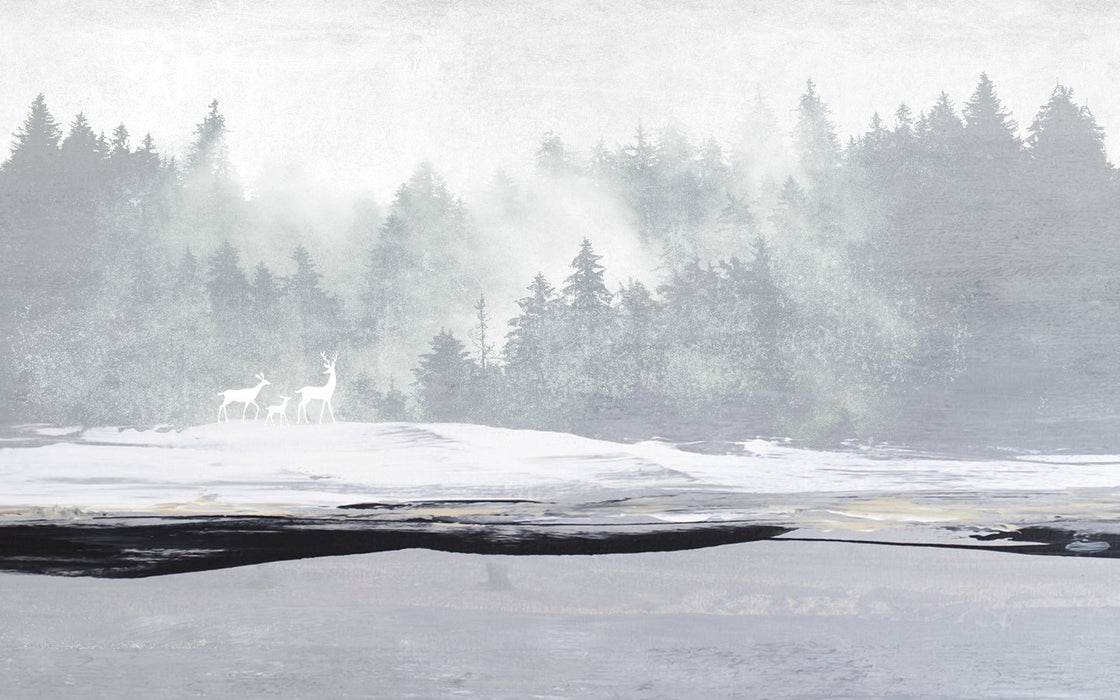 Descubra nuestro papel pintado de bosque neblinoso y ciervos, que le transportará al borde de un bosque nevado. Este papel pintado de naturaleza en estilo abstracto es ideal para un dormitorio, un salón o un despacho. Una decoración mural a medida que aportará luz y frescura a su habitación. Un mural artístico único para transformar y hacer único su interior. Un papel pintado de moda que hará las delicias de sus ojos. Elija un papel pintado panorámico a medida para un efecto llamativo.