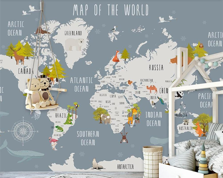 ¡Cree un mundo cautivador para su hijo con este papel pintado de mapamundi panorámico!