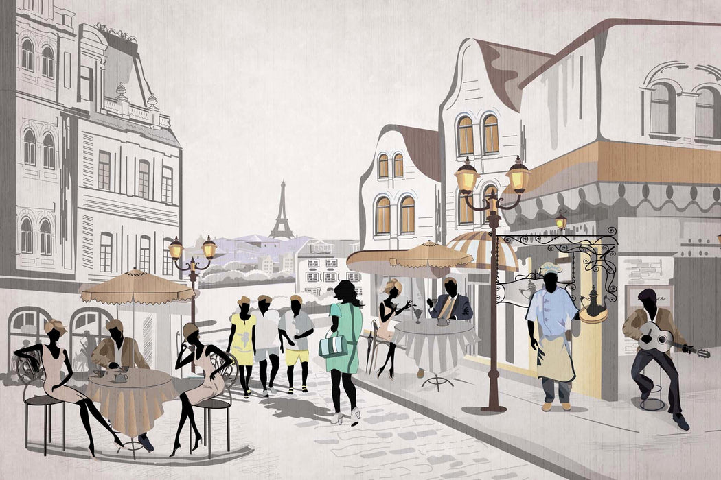 El papel pintado tejido-no tejido francés Paris café en terrasse aporta luz y elegancia a su interior. Papel pintado con vistas a la Torre Eiffel. Su patrón dinámico añadirá perspectiva a su habitación. Una decoración de pared panorámica que impresionará a sus invitados. Cree fácilmente un interior único con nuestro papel pintado no tejido a medida. (Colores Los caracteres pueden modificarse previa solicitud por correo electrónico).