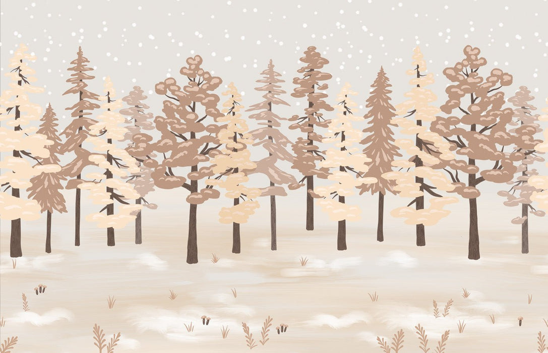 Abeto cubierto de nieve, colores pastel, este papel pintado infantil de abeto en acuarela de cuento de hadas nos transporta a un mundo de ensueño. Este papel pintado, pintado como un mural, es artístico, mágico y de cuento. Los colores de este tapiz panorámico son relajantes. Esta decoración mural es suave, tierna y evasiva.