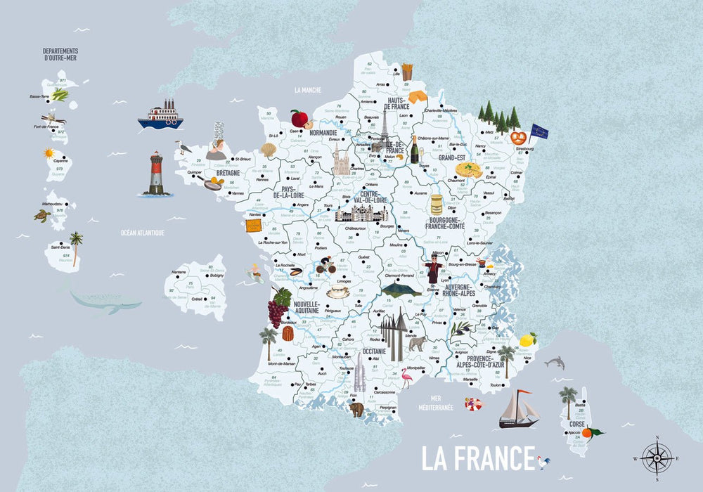 Descubra nuestro papel pintado infantil mapa azul de Francia. Con este mapa de Francia, grandes y pequeños aprenderán fácilmente la geografía de Francia. Este papel pintado mapamundi ilustrado permite descubrir las especialidades de las regiones o departamentos. Un papel pintado divertido, fácil de aprender y bellamente ilustrado que destaca todas las riquezas de Francia: monumentos, comida, montañas, ríos, departamentos y el mar... ¿Cómo no enamorarse de este mural de pared de la carta de Francia? Este diseño panorámico de estilo suave y escandinavo está disponible en tres colores. Es ideal para crear un ambiente relajante que le ayude a conciliar el sueño, pero también está pensado para facilitar el aprendizaje e inspirar a toda la familia a descubrir los cuatro rincones de Francia. Es fácil crear una decoración única con este papel pintado a medida. Estamos seguros de que le encantará. Todos nuestros papeles pintados son ecológicos, Kids Friendly. Son respetuosos con el medio ambiente y con los interiores. Cuelgue este papel pintado panorámico Carte de France en el dormitorio, la sala de juegos o la clase de su hijo. Los niños quedarán maravillados.