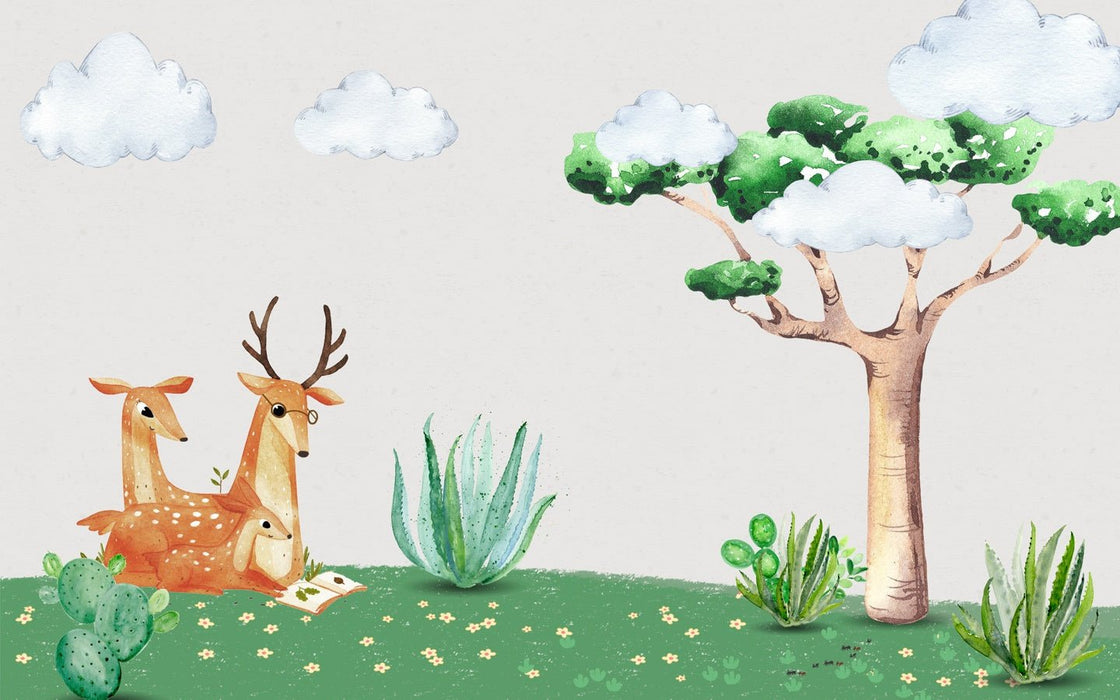 Descubra nuestro papel pintado de ciervos y plantas. Este papel pintado infantil de animales es relajante e ideal para un dormitorio infantil, una habitación de bebé o un cuarto de juegos. Un papel pintado infantil a medida que aportará suavidad y ternura a su habitación. Un mural infantil relajante y cálido que transformará su hogar. Este papel pintado vegetal ha sido especialmente diseñado para el espacio vital de su hijo. Este papel pintado panorámico es sano y respetuoso con el medio ambiente.