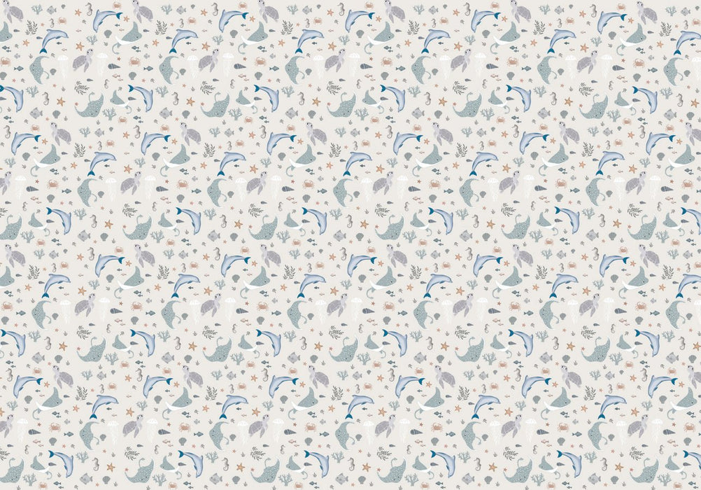 Decore el dormitorio de su hijo con el papel pintado beige motivo oceanía, en delicados colores pastel. Un papel pintado a medida para el bebé, saludable para su dormitorio y para el aire de su hogar. Inicie a su hijo en el papel pintado con motivos panorámicos y quedará maravillado.