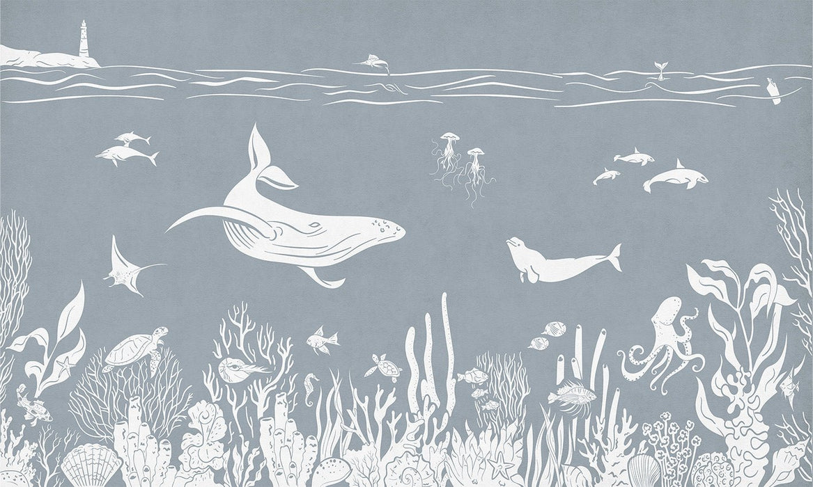 El dormitorio de su bebé o niño se transformará gracias a nuestro papel pintado Paseo acuático azul. Este papel pintado monocromo azul pastel suaviza y calma el ambiente del dormitorio de su hijo. Ideal para apoyar y desarrollar la curiosidad de su hijo, este papel pintado infantil con animales marinos cuenta historias tiernas. Sumerjámonos juntos entre delfines, ballenas, peces y corales para maravillarnos y aprender divirtiéndonos. El azul de este papel pintado es suave.