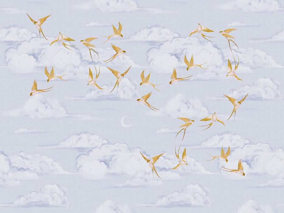 La poesía y la magia están a la orden del día con este poético papel pintado de nubes de pájaros dorados . Si desea crear un estilo elegante y sutil, esta romántica creación mural es perfecta. En un salón, en un dormitorio (como cabecero), o en un hall de entrada, en un salón de té o en una habitación de hotel, este papel pintado panorámico aportará luminosidad y un toque sofisticado a su interior. Cree un interior de ensueño con nuestro papel pintado panorámico a medida.