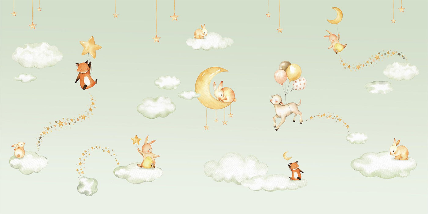 Nuestro mural infantil verde se compone de colores suaves y apacibles para encantar a su hijo y ayudarle a conciliar el sueño.