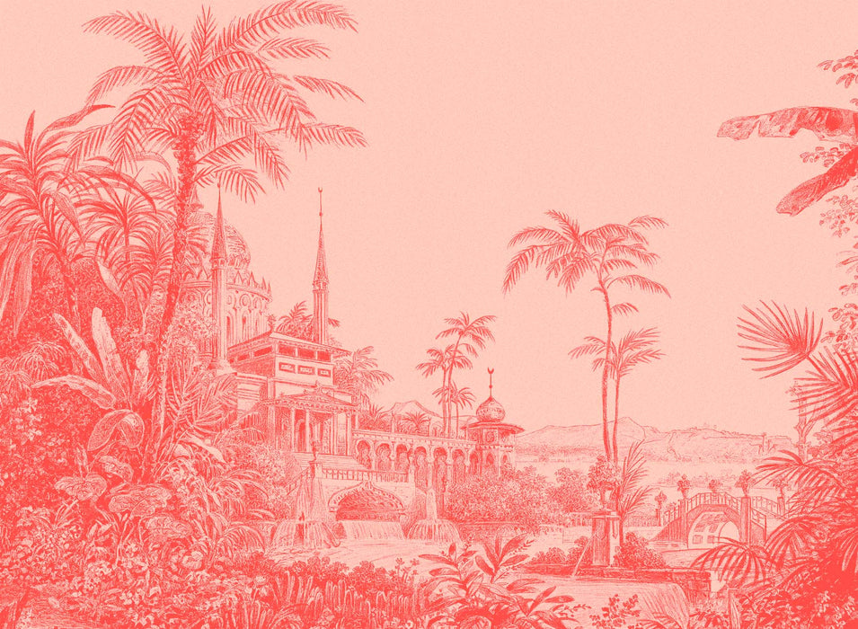 Papel pintado Selva del templo rojo monocromo