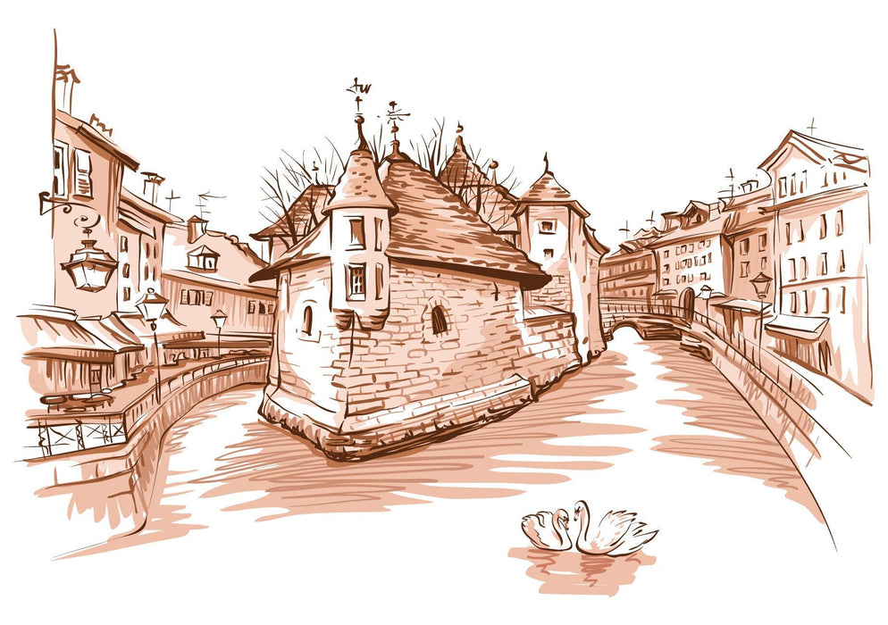 Descubra nuestro papel pintado de terracota Venise des Alpes, dedicado a la famosa ciudad de Annecy, disponible en terracota o en blanco y negro, para adaptarse a todos los interiores. Nuestro producto exclusivo MuralConcept ofrece una calidad de ilustración inigualable, capturando con precisión las estrechas calles del casco antiguo de Annecy, sus terrazas, su famoso Palais de l'Isle y las orillas del Thiou.