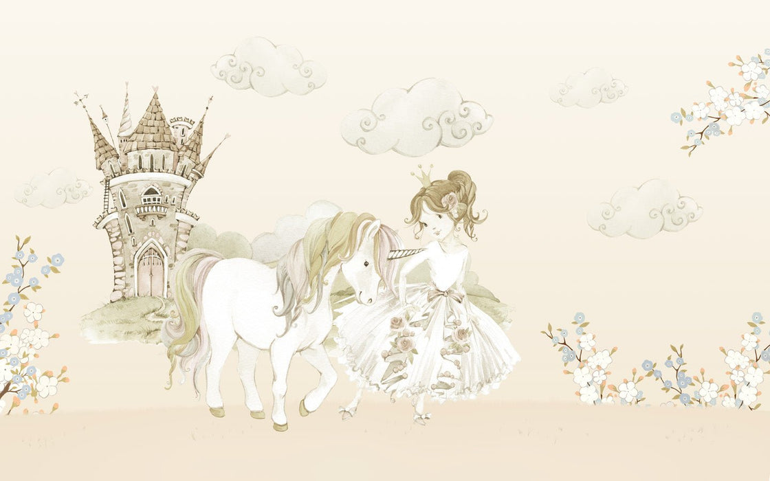 Su hijo estará fascinado por este magnífico papel tapiz de princesas de unicornio en colores pastel. Licorne, Princess, Castle están unidos para crear una decoración mágica. Este fondo de pantalla alegrará la habitación de su hijo y traerá suavidad y relajación. ¡Sin lugar a dudas, esta decoración de pared transportará a su hijo a su mundo imaginario favorito!