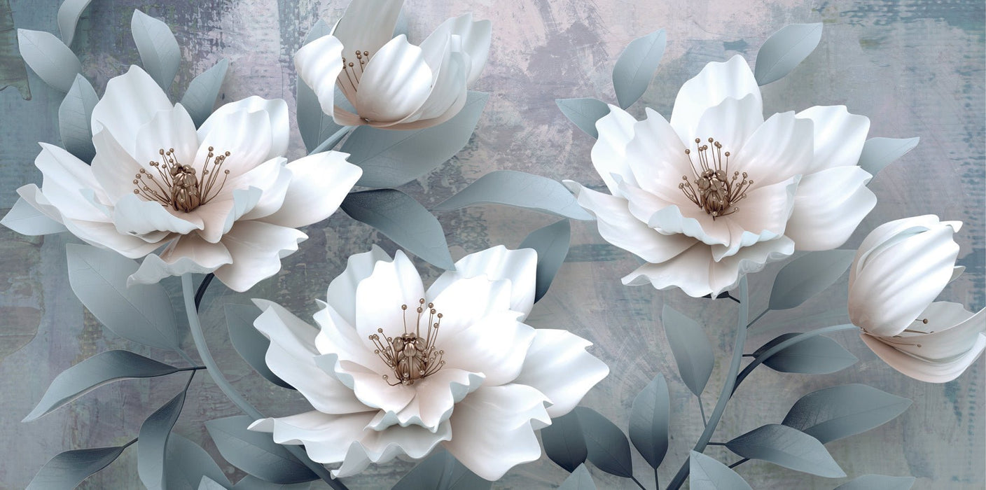 Este fondo de pantalla de delicadeza con elegantes flores blancas trae un toque moderno a su interior. Ideal para un dormitorio, una sala de estar o una oficina, este fondo de pantalla de delicadeza es muy sofisticado. El lado vintage se acentúa por el motivo florido para el deleite de los entusiastas de los viajes nostálgicos y románticos en el tiempo. Cree fácilmente un interior único con nuestro fondo de pantalla a sus medidass.