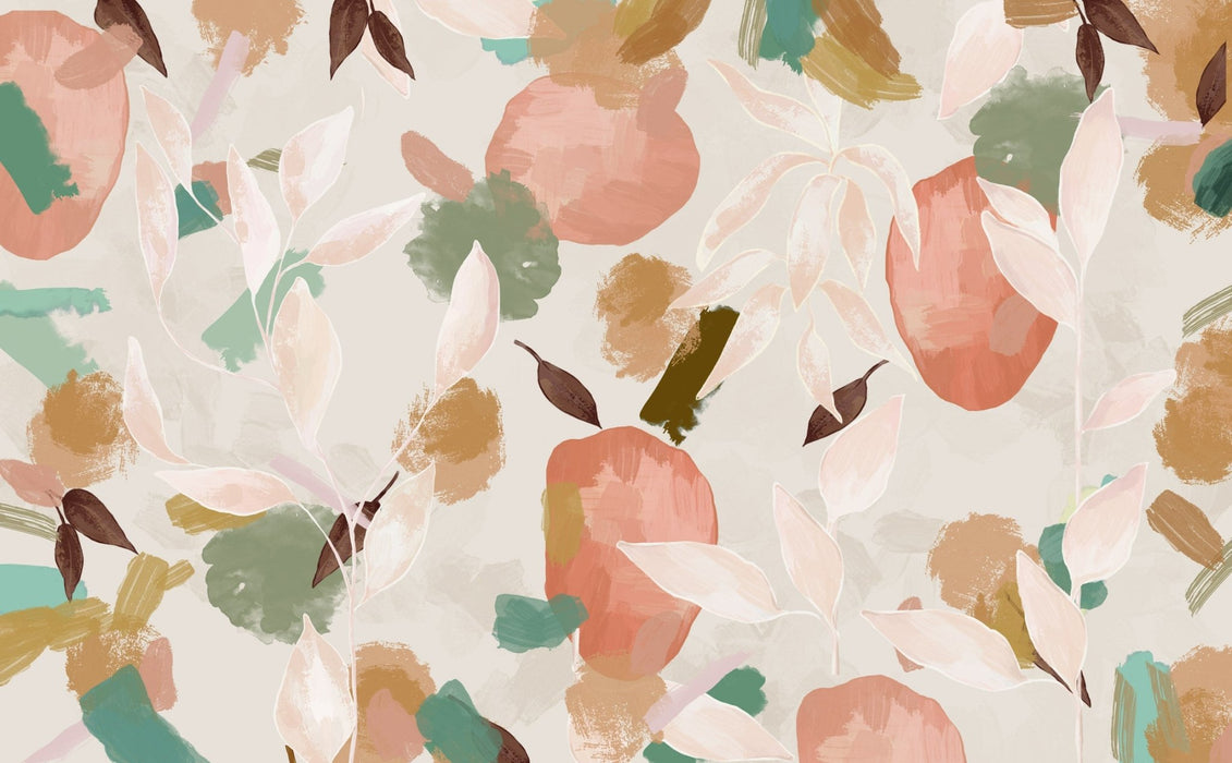 Sus suaves tonos rosa empolvado, verde salvia, ocre dorado y terracota armonizan a la perfección para crear un ambiente relajante, ideal para un dormitorio principal, un salón luminoso o un espacio de bienestar. Cada detalle evoca una pintura a mano alzada, para un resultado artístico único y cálido.