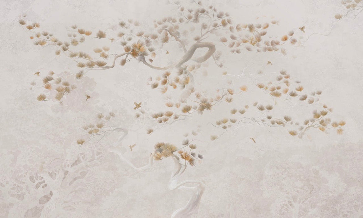 Cree un ambiente elegante y relajante con nuestro papel pintado de estilo japonés «Brume de Pin», ideal para realzar un comedor, un salón, un dormitorio o una zona de recepción. Este papel pintado panorámico de alta gama se inspira en el arte tradicional japonés con sus ramas de pino vaporosas, sus delicados pájaros y sus tonos neutros y brumosos.