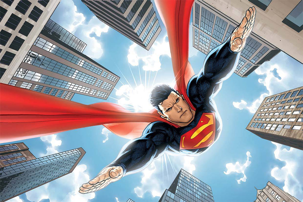Papel pintado panoramico heroe superman comics fly over vintage city
