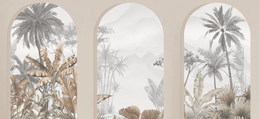 Papier peint arches tropicales sépia
