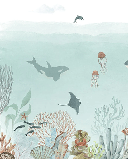 Papier peint bébé baleines bleu