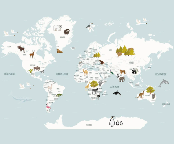 Papier peint Carte du monde en Francais enfant bleu glacier