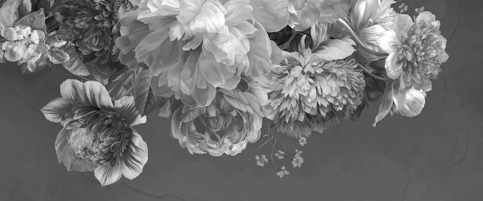 Papier peint fleur pivoine noir et blanc