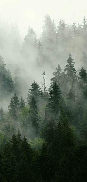 Papier peint forêt brumeuse verte