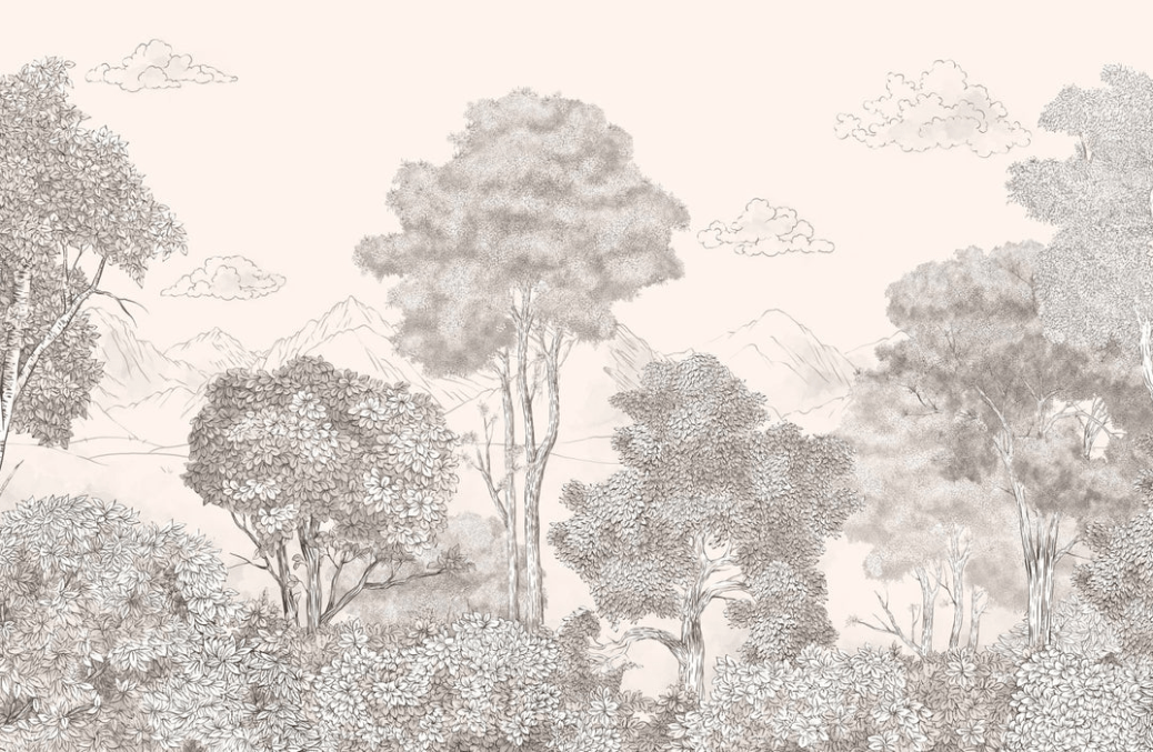 Papier peint panoramique Forêts et Monts Crayonnés Beige