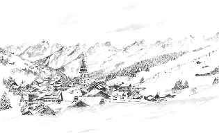 Papier peint panoramique La Clusaz en peinture - Noir et blanc