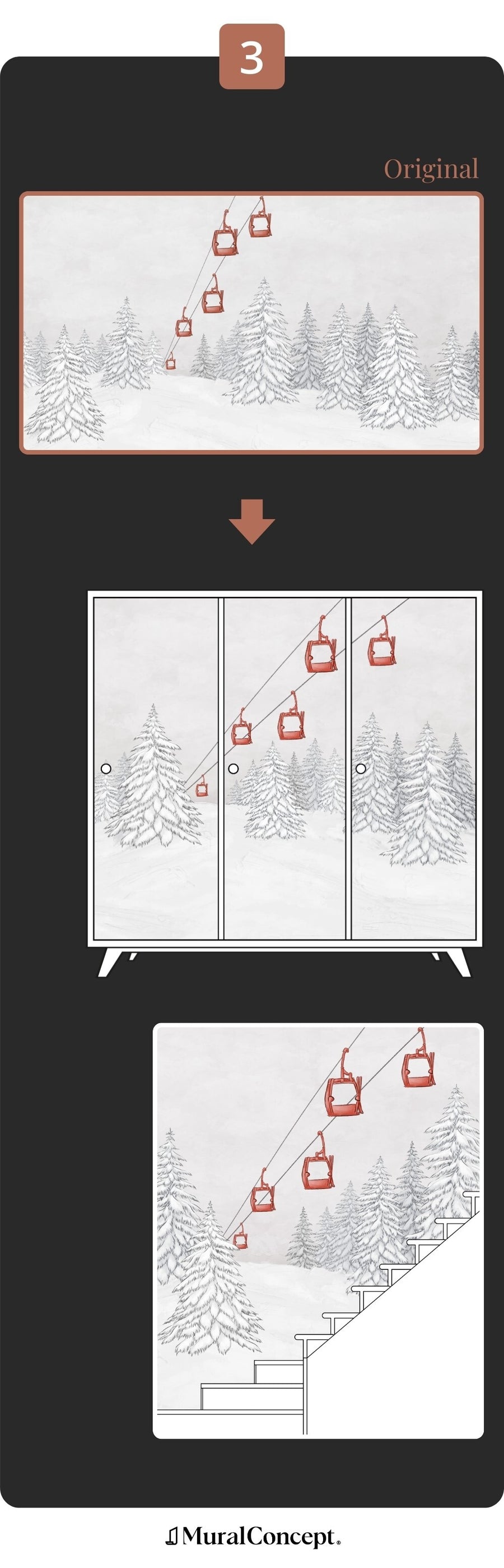 Nuestro estudio de diseño puedemodificar la imagen para adaptarla a sus limitaciones de disposición : cabecero, ático, hueco de escalera, etc.