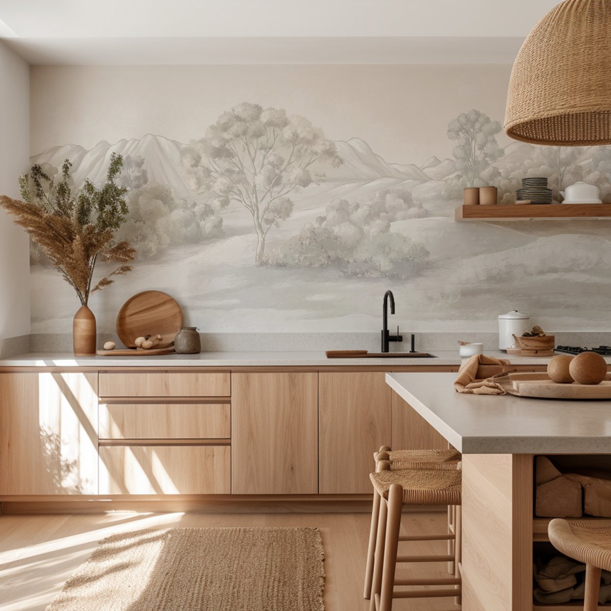 Papier peint paysage poétique sépia