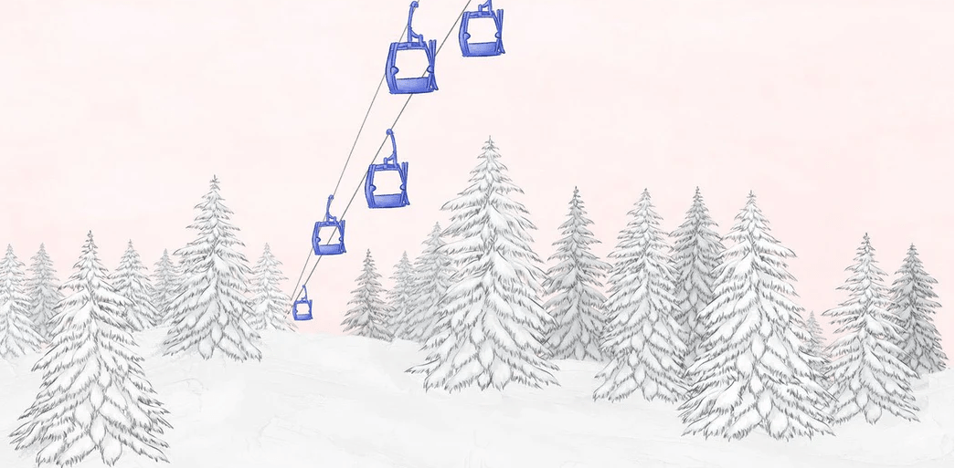 Papier peint télécabine bleuet