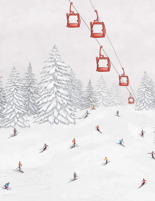 Papier peint télécabine skieurs colorés