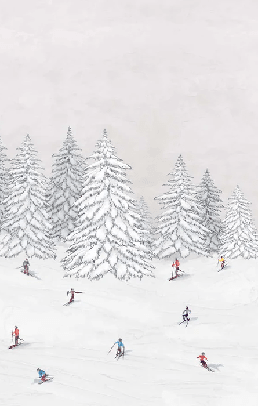 Papier peint télécabine skieurs colorés